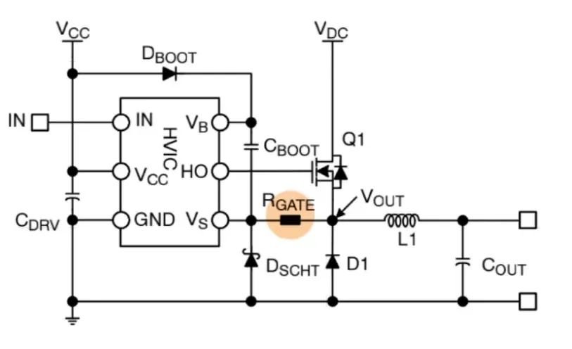 如果自举二极管在栅极驱动器内部的话,添加一个与内部自举二极管并联的外部二极管,因为二极管功耗很大。外部二极管必须放置在靠近栅极驱动器的地方,以减少串联寄生电感,并显著降低正向电压降。
