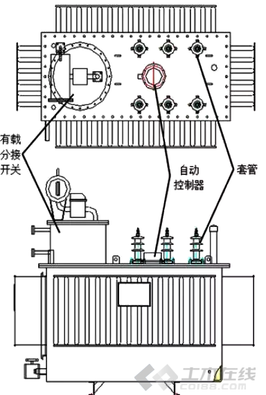 自耦变压器的整个线部分:串励线圈、并励线圈、控制线圈。其中串励线圈是一个有多个抽头的绕组,这些抽头通过有载分接开关的不同导线串联在输入输出之间,改变分接位置, 从而改变自耦变压器变比,达到调整电压的目的;并励线圈为自耦变压器的公共绕组,产生传递能量的磁场;控制线圈为控制器提供工作电源和采样信号。