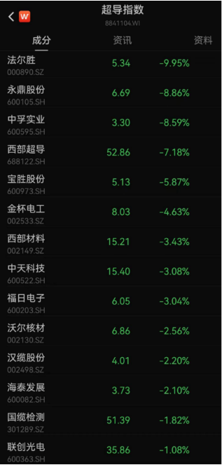 今日上午,此前连续火热的超导概念股大跌,Wind超导概开云真人官方网站 云开真人念指数跌逾3%,法尔胜、永鼎股份、中孚实业、西部超导等悉数大跌,中孚实业、法尔胜、永鼎股份均以跌停价开盘。