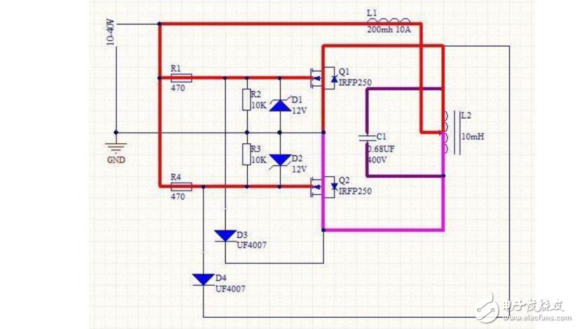 零电压开关原理无非就是和普通变压器一样,铁心发热,又或者一个简单的电磁炉。交变得磁场加到线圈上,当你将铁棒放入线圈内,铁棒产生感应电流,随即发热被烧红。图是一张典型的zvs电路图。